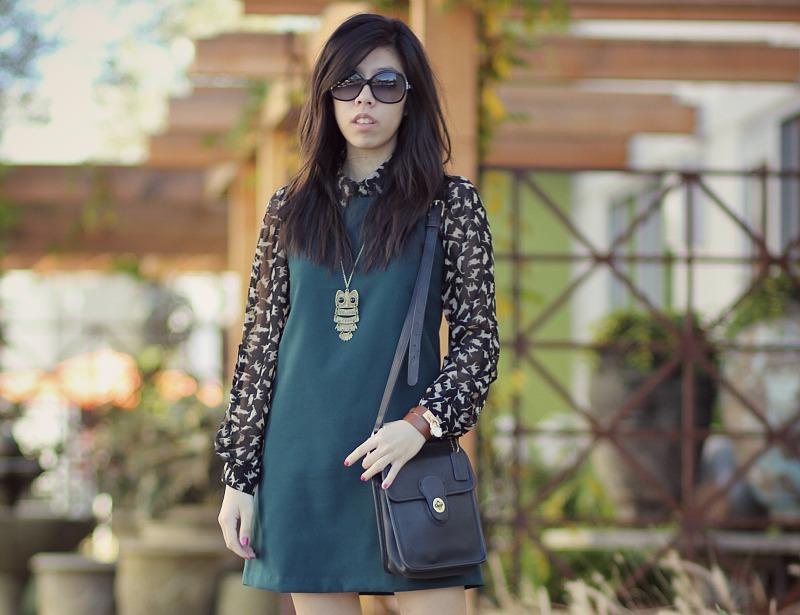 // DIY Dress made by my mom! // Zara Cat Print Blouse // OASAP Necklace: Purchase HERE // Seychelles Heels // Chanel Sunnies // Vintage Coach Bag from my mom! //